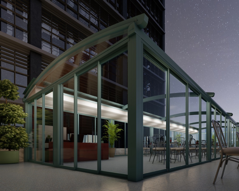 Den erbjuder en rymlig miljö tack vare sin starka, breda och eleganta konstruktion. Den kan enkelt göras till en helt sluten struktur och användas bekvämt i alla väderförhållanden.
