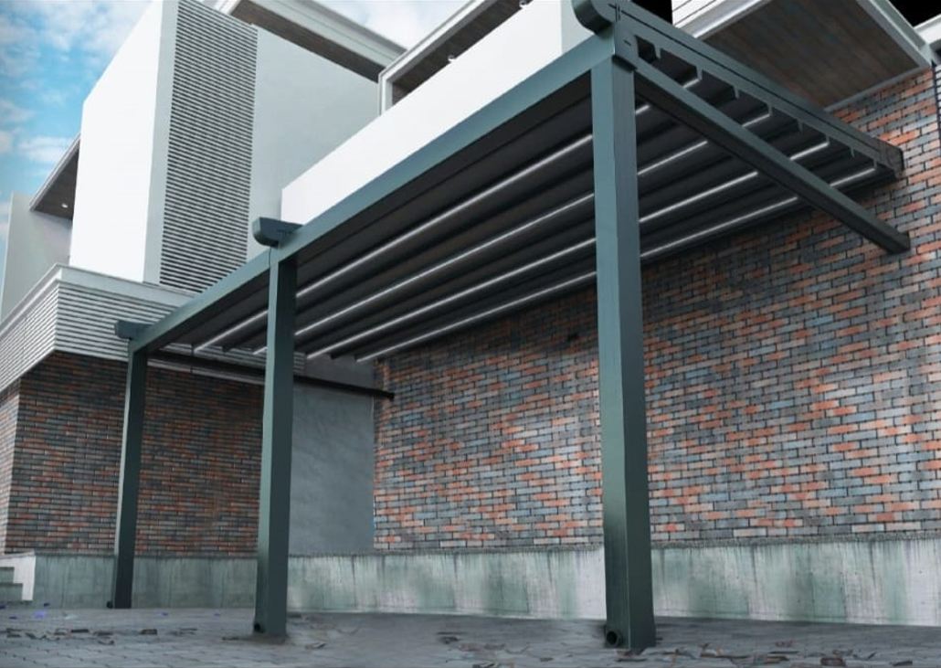 Pergola Göteborg, som drar uppmärksamhet med sin enkla och eleganta design, är mycket hållbar tack vare sin konstruktion med bakre bärande stålelement, anpassad för användning i öppna utrymmen.