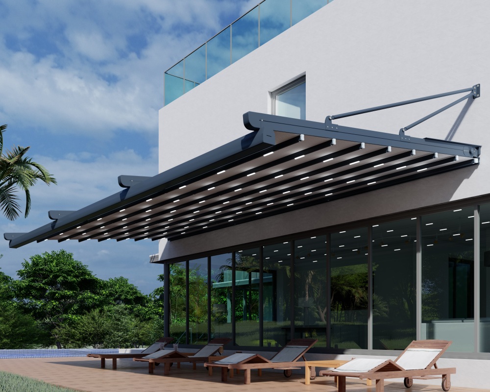 Pergola uteservering Barw 3 -seriens infällbara pergolor, som är designade utan främre stöd i en upphängd konstruktion, är det självklara valet för dem som söker något annorlunda i sina utomhusmiljöer, med en struktur som